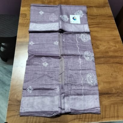 Be the first to review “Lavender Grey Embroidery Linen Saree – Elegant Office Wear & Minimalist Style”