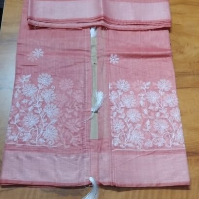 Be the first to review “Pastel Peach Embroidery Linen Saree – Elegant Office & Casual Wear”